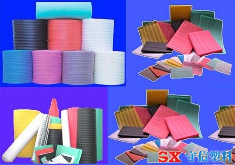 珍珠棉又叫EPE,主要原料是PE,通過丁烷發泡加入抗甘酯等。分卷材,片材,型材,管棒材,珍珠棉袋,其它特殊規格珍珠棉,有防靜電和不防靜電,顏色一般為白色,加色母可以調成黑色,藍色等,一般粉紅色為防靜電。國產,